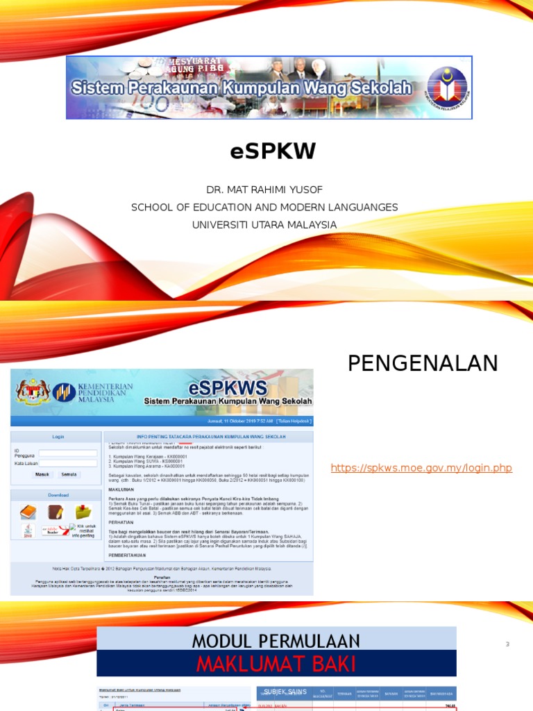 Ia sekaligus menjadi salah satu kejayaan pihak. Sekiranya anda sudah mempunyai maklumat untuk log masuk akaun layari portal rasmi eSPKWS di alamat httpsspkwsmoegovmyloginphp Untuk login di halaman utama portal ini sudah disediakan borang untuk login dimana anda hanya perlu memasukkan 2 maklumat berikut. ESPKWS merupakan sistem baharu yang dibangunkan oleh Kementerian Pendidika Malaysia KPM ianya dikenali sebagai sistem perkaunan berasaskan komputer bagi membuat selenggaran perakaunan kumpulan wang sekolah berelektronik dengan lebih cekap serta efisien.